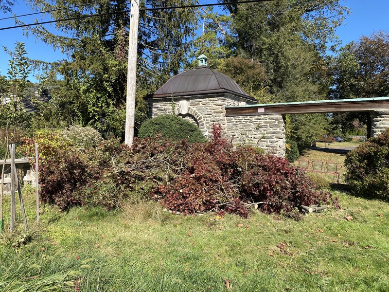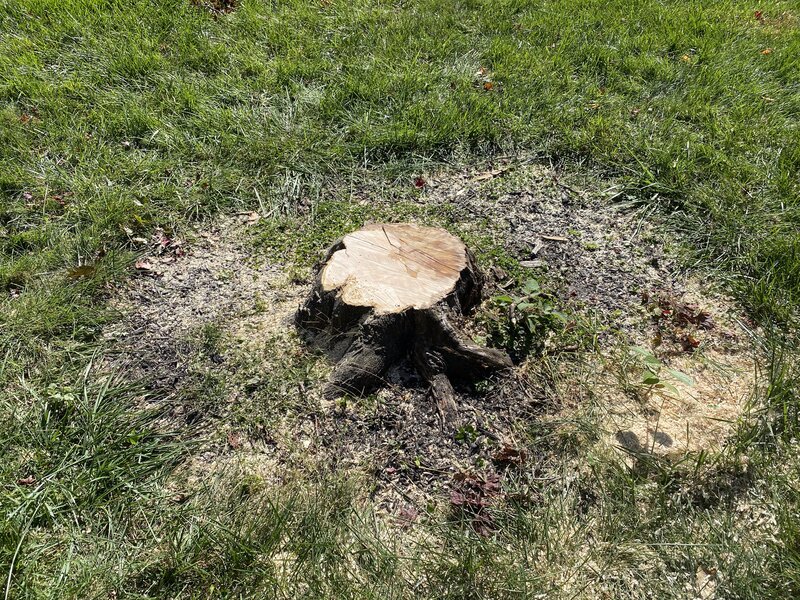 Once it was down, I found less rot in the wood around the base than I'd expected, but it was only going to get worse (result of landscapers volcano mulching it in the past) and plus it was a non-native that threw out tons of seedlings everywhere. Some of its wood went to the firewood pile and will be burned for probably the next two winters after this one. The rest went to turning a small brush pile I'd started into a large one. Oh, and a couple small limbs were cut into "walking sticks" for my daughter.